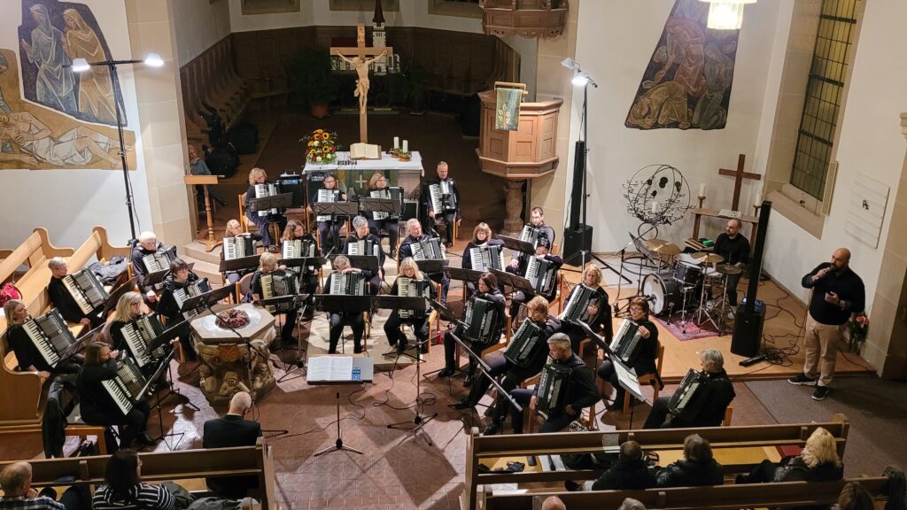 Das 1. Orchester des Harmonika-Club Ilsfeld unter der Leitung von Klaus Berger lud zu einem stimmungsvollen musikalischen Abend ein, der zahlreiche Besucher in die Kirche lockte.